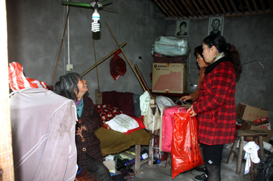 受北方强冷空气的影响,昨天普降大雪。12月15日下午,院桥镇妇联、老龄委负责人来到该镇泾南村病残的孤寡老人王菊珍家中,为其送上了棉被、毛毯等防寒礼品。