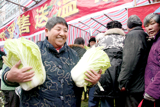 “早上5点钟就来这里排队,我买到了猪肉、鸡蛋、大白菜!价钱这么便宜,都是政府政策好啊!”1月27日上午,翁大妈在天长北路第二菜市场采购了许多政府补贴肉菜,喜悦之情溢于言表。政府贴补销售猪肉、猪脚尖、鸡腿、鸡蛋、大白菜、粉丝、白萝卜等8样商品,总价值120万元。