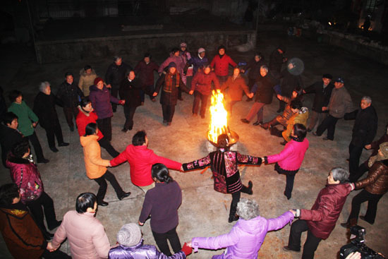 2月15日晚上,砚池社区里的居民们举办了一场别开生面的篝火晚会,迎接元宵节。“五星红旗迎风飘扬,我们歌声多么响亮……”在现场,社区居民们兴奋地围着篝火,唱响了一首首经典的红色歌曲,歌声嘹亮激昂。随后,社区里的大爷大妈和孩子们围成同心圆,跳起了动感十足的兔子舞,尽管不是很整齐,但大家表示,以前只是在电视上看到过篝火晚会,现在自己也能够参与,玩得非常尽兴。