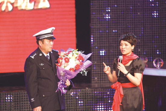 2月22日,“感动台州”十大人物获得者王义生在接受特约主持人采访。当晚,由市委宣传部等单位主办的第四届“感动台州”颁奖晚会在椒江举行,黄岩公安分局民警王义生高票当选“感动台州”十大人物。