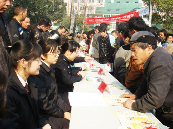 3月4日上午,市、区妇联联合在黄岩人力资源市场门口举行“三八维权周咨询活动”,邀请了检察院、法院、公安、司法、工商等相关部门人员参加,为外来民工提供相关法律咨询服务,发放各种宣传资料。
