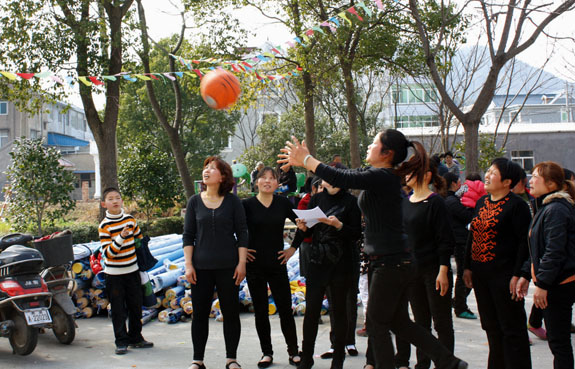 3月8日下午,头陀镇白湖塘村农民学习会馆里人头攒动,热闹非凡,全村120余名妇女在这里参加了定点投篮、青蛙跳水、跳绳等趣味活动,开开心心过“三八”节。