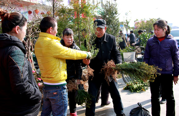 3月9日是院桥镇集市日,该镇的不少农民正忙着在苗木市场的红豆杉摊位上与摊主讨价还价,购买红豆杉苗木,交易场面十分活跃。眼下正是种树的黄金时节,与往年不一样的是,今年珍贵树种——红豆杉成了农民最抢手的热门苗种,当天5000多株红豆杉被农民朋友争相购买,种植珍贵树种开始成为农民增收致富的新途径。