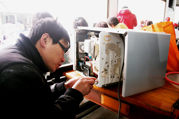 近日,东城街道海棠社区的党员志愿者正在为社区居民修电器。在“创先争优、共建和谐社区”为民服务活动中,来自该社区的十余名党员志愿者为社区居民群众提供了量血压、测血糖、法律咨询、医疗咨询、理发和就业咨询等服务。