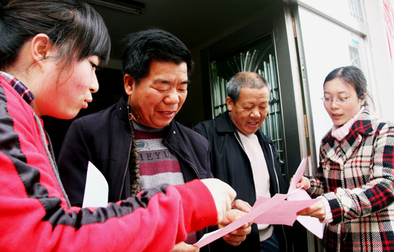 3月14日下午,东城街道大学生“村官”正在向村民宣传政策法规。目前正值村委会换届选举,为了营造风清气正的选举环境,该街道发挥大学生“村官”优势,引导他们在村委会换届选举期间争当宣传员等“五员”,确保顺利完成本次换届选举工作。