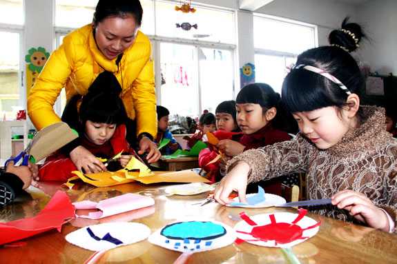 3月23日“世界气象日”,当天上午,黄岩区百花幼儿园的大班小朋友在老师的指导下,制作形象生动的“气象标志”,在动手的过程中增加对气象知识的了解。
