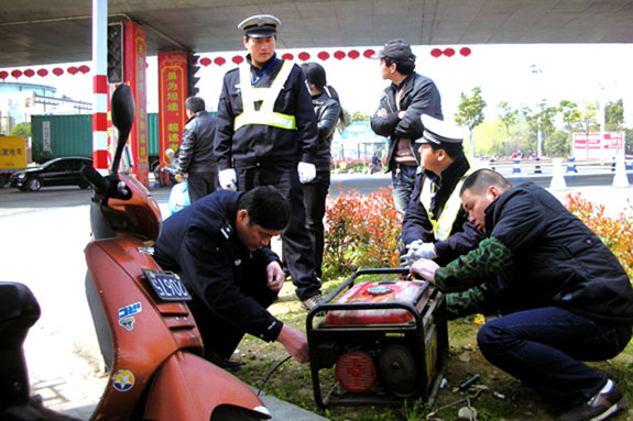 3月25日上午,在黄椒路与二环东路交汇处,交警和工作人员正启动发电机为道路信号灯供电。当天,为应对部分区域停电对交通带来的影响,区交警部门调来发电机,对道路上停电的信号灯进行应急供电。