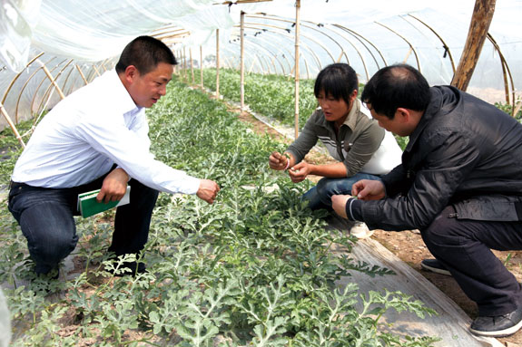 近日,区农技专家徐加湖在头陀镇溪上村种植大户吕金莲田头诊断西瓜病害。连日来,区农业局广泛开展“深化双服务,为党旗增辉”活动,组建了五支服务小分队,通过联系粮食生产功能区、现代农业综合园区、粮食高产创建示范点和规模化农民专业合作社,开展现场指导服务、农业技术培训和“五送”服务活动,着力推动春耕生产,为全年粮食生产和农业发展夯实基础。