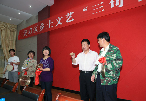 5月12日晚上,区委宣传部在院桥镇繁荣村农民学习会馆内举办首期全区乡土文艺“三句半”培训班,来自全区的19个乡镇、街道宣传、文化干部和乡土文艺爱好者共100多名参加了培训。培训邀请了区文化馆蔡加跃老师为学员们讲解“三句半”表演的节奏、表情、步伐、动作等基本功,还辅导学员进行了现场表演,使学员们受益匪浅。图为是蔡加跃老师正在辅导学员表演“三句半”基本动作。