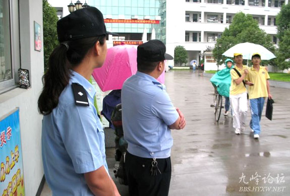 6月13日至15日,城西派出所积极会同街道职能部门、校方有效落实中考期间各项安全保卫工作,切实维护辖区各中学考点的考场秩序,为考生提供良好的应试环境。图为6月13日,民警在辖区内西江中学考点门口执勤。