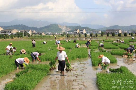 时下正是插种的季节,在院桥镇各村的田间上,随处可见广大农民抓住当前晴好天气,起早摸黑,抢种单季晚稻,希望补上被阴雨天耽误的农事。院桥镇今年种植单季晚稻约1.6万亩,如不及时插种,粮食产量就会受影响。图为是岙里街村的农民们在田间拔秧苗时的场面。
