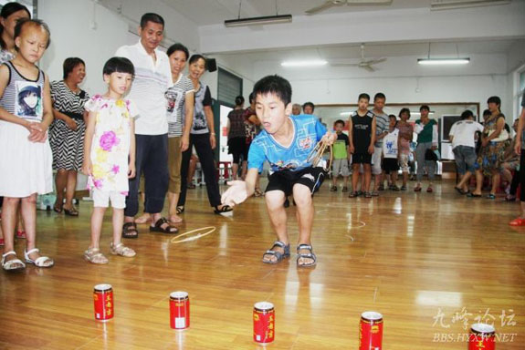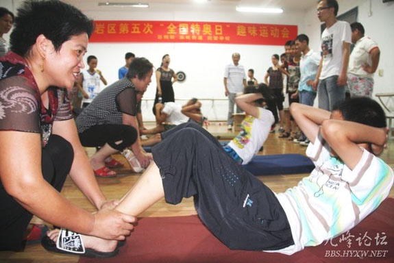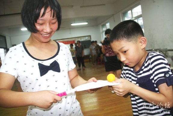 在天长小学的活动室里,来自社区和特教学校的30多名智力残疾人,在教师和志愿者的指导和协助下,参加了背靠背运球、套圈、仰卧起坐、亲亲运球、投飞镖和保龄球等多项趣味赛事。虽然时值盛夏,室外酷暑难耐,但参加活动的运动员和家长们依旧热情高涨,活动现场有如一片欢乐的海洋。