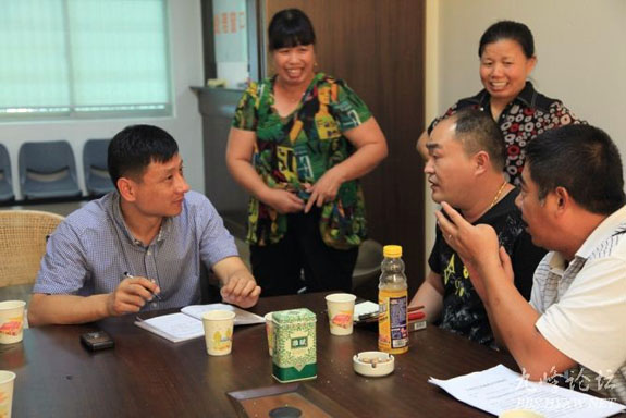 8月16日,黄岩公路段段长章建荣在头陀公路站听取职工意见与建议。