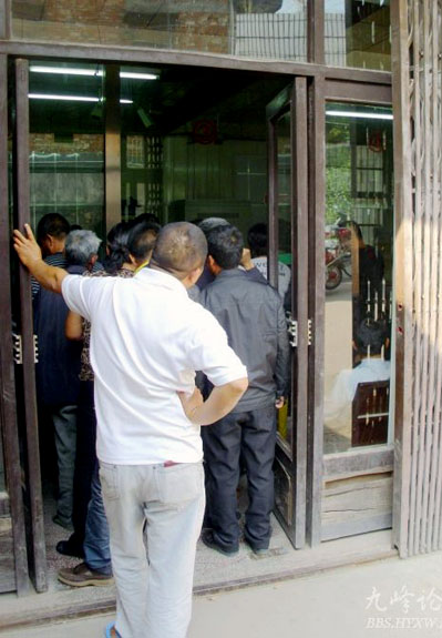 图为茅畲乡各村瓜农在排队还贷款时的场面。