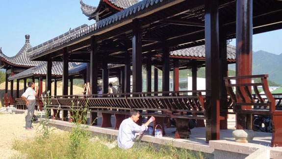 10月18日,宁溪镇沿溪景观带工程正在热火朝天地施工中。该镇投资300多万元动工建设沿溪景观带工程,该工程地处集镇中心黄岩溪宁溪段岸边,在近2000米长的绿化带内兴建健身广场、假山、游步道以及各种亭台,集文化、体育、娱乐、休闲为一体,既美观,又实用。图为施工人员正在油漆文化长廊。