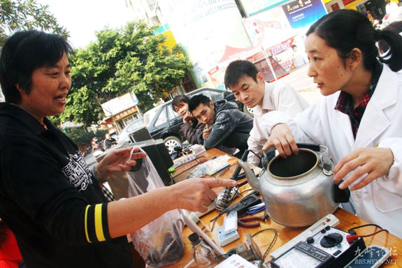10月18日是全国第二个“光彩服务日”。当天上午,黄岩区城中个体劳动者分会、私营(民营)企业分会和山亭社区在小东门路世纪联华超市门口联合开展以“条例促发展、服务报党恩”为主题的便民服务活动。此次活动为广大市民提供免费剪发、修理家电和修钟表等。