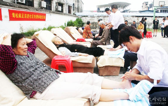 10月23日下午,东城街道百花社区与青松阁足浴联合开展“金秋送健康”免费洗脚活动。10多位青年志愿者为社区老人和残疾人们开展免费洗脚、足部按摩和足部按摩知识讲座等一系列活动,通过这样的活动来增强老年人和残疾人的足保健意识,也倡导大家尊敬老人、关爱残疾人的良好风气。