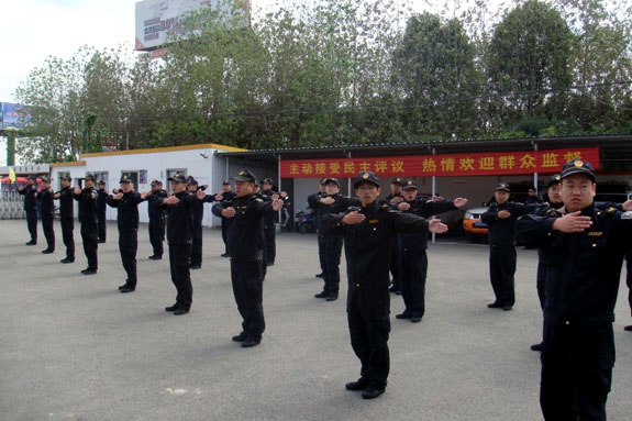 为提高路政人员业务素质和军事素养,10月25日起,104国道黄岩超限运输检测站组织全体人员进行为期4天的军事训练,军训主要内容为交通手势、队列训练等。