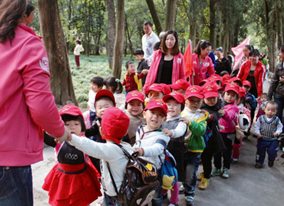 10月28日上午,九峰公园里热闹非凡,孩子们排着队牵着小手,在老师的带领下有序进入公园。温暖的阳光下,柔和的秋风中,公园里充满了孩子们天真快乐的笑声。