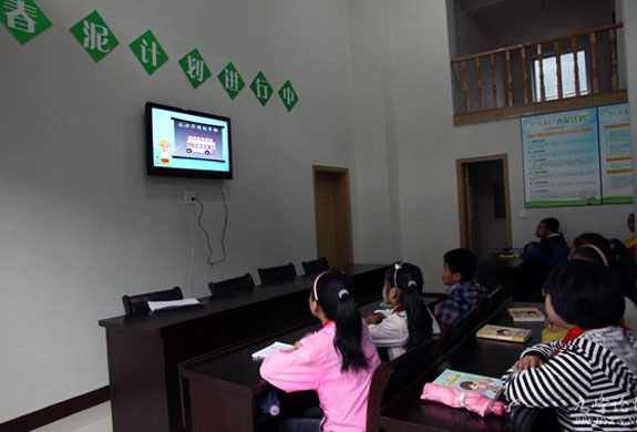 11月8日,宁溪镇坦头村组织村里30多名小学生在村未成年人俱乐部收看《交通安全动画宣传片》,这是该村“春泥计划”的系列活动之一。