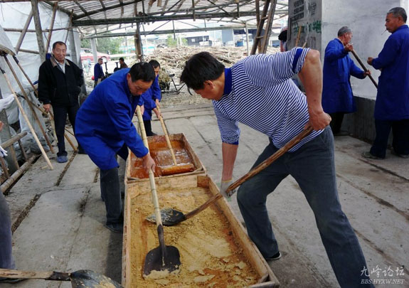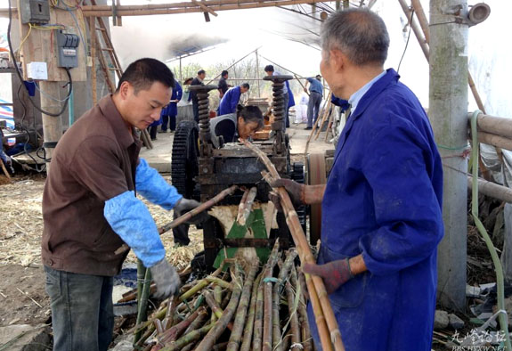 11月22日上午,在头陀镇双楠村榨糖作坊里,10余名工人正忙着压榨糖蔗、熬煎糖液,不一会,一锅锅热气腾腾、香喷喷的红糖就出锅了。据悉,头陀红糖有近百年的生产历史,因其甜度高、杂质少在台州小有名气,每年榨糖一开始,就有不少市民慕名而来购买红糖,今年新上市的红糖价格每公斤在24元左右,非常畅销。
