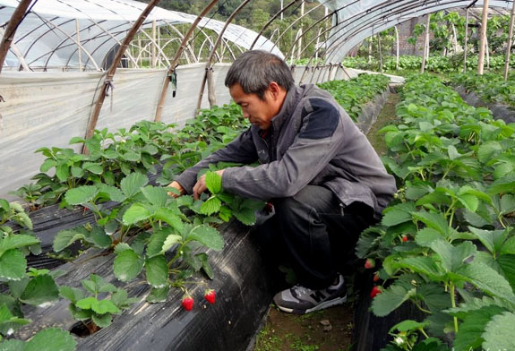 11月22日上午,头陀镇小里灰村草莓种植户徐子美正在基地里采摘成熟的草莓。据悉,由于今年气温高,小里灰草莓普遍比往年提前半个月左右上市,目前,老徐家种植的草莓已开采10多天了,价格平均每斤在25元左右。下阶段,老徐和小里灰其它莓农还将推出草莓采摘游活动,吸引游客,体验农家乐。