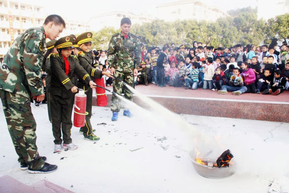 11月22日下午,东城街道中心小学举行了全校师生紧急消防演练。随警报声响起,同学们立刻离开座位排好队,弯着腰、用毛巾捂住鼻子跟着老师井然有序地撤离,沿着安全通道跑下楼。随后,黄岩消防大队的消防官兵们向师生们详细讲解了校园、家庭生活中的防火常识、火场逃生、救人与自救以及如何报警、灭火器的正确使用方法等消防安全知识,并手把手教导学生们正确使用灭火器,让学生们学到了不少知识。