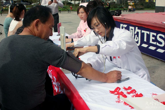 12月1日世界艾滋病日,11月30日上午,一场题为“行动起来,向‘零’艾滋迈进”的活动在乐购超市广场举行。黄岩现代妇科医院的医生和护士向市民宣传防治艾滋病的相关知识。