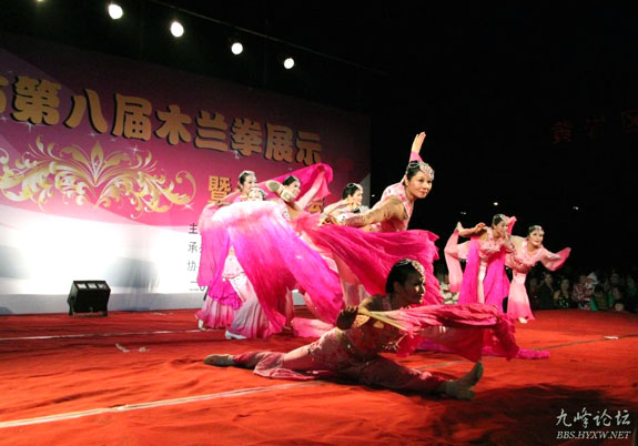 当晚,黄岩木兰协会的演员率先着装登场,《火凤凰》、《梁祝》、《美丽的大草原》等精彩演出不时博得台下阵阵掌声。薛瑛是黄岩木兰协会的会员,她的另一个身份是黄岩木兰拳、木兰扇的义务教导员,她告诉记者,木兰拳、木兰扇等健身活动如今在橘乡各地大受欢迎,全区已有2000多名学员,她们此次参演的目的也是为了展现木兰拳的魅力。