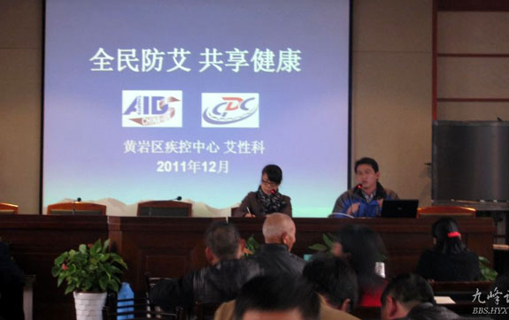 12月5日下午,黄岩疾控中心工作人员来到西城街道宣传防艾知识。图为工作人员在作题为“全民防艾共享健康”的知识讲座。