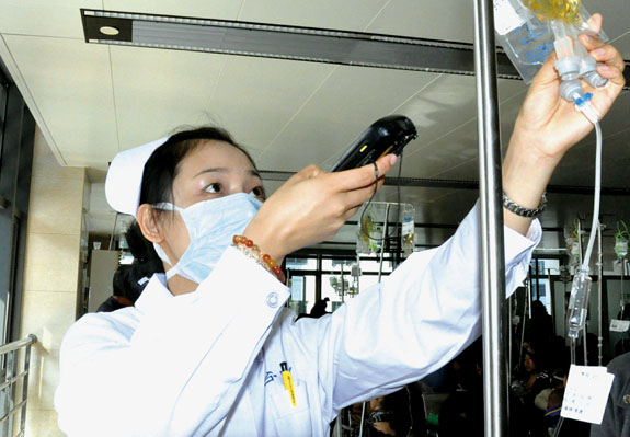 近日,台一医输液室,一名护士正手持手机大小的医用电脑(PDA),在患者的输液卡上轻轻一扫,立刻,电脑上显示出该患者的基本资料,还有医嘱、药物执行流程等信息资料。PDA系统从2009年10月开始,在该院神经内科试运行期间,一直运作良好。2011年5月,该院输液室也开始投入使用该系统。据悉,该系统同时囊括了电子病历的所有护理程序、内容和功能,涵盖了病人导航、病员基本信息、费用情况、输液核对、采血登记等功能,是一个完整的小型移动电子病历系统,该系统在使用过程中只需用手指轻轻一点,病员的信息即在掌中一目了然,在一定意义上更有效地避免差错发生。