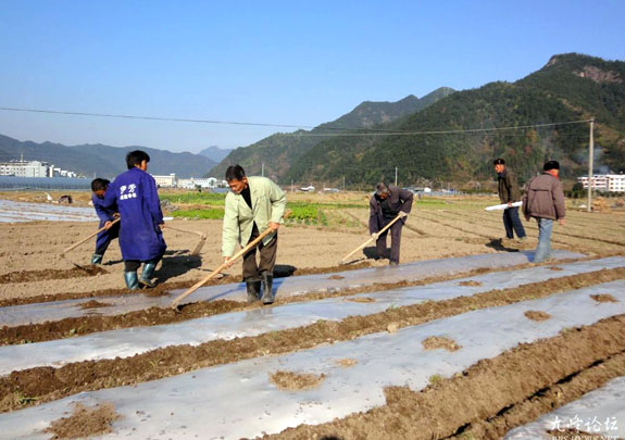 12月19日,宁溪镇横街居王林飞家的闲田里,当地群众正忙着帮他种植芋头。据了解,时下种植的芋头,到明年7月份就可上市,趁按传统种植的芋头还未上市前投入市场,可以卖得好价钱,因此好多村民趁着冬闲种早芋。