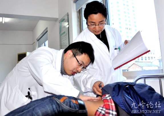 12月20日下午,台一医青年医师阳光团队成员陶潞渊(左)正接受普外科副主任医师周志军的操作考核。为快速培养青年医师临床工作能力,提高医院整体医疗技术水平,台一医先后成立了两批青年医师阳光团队,通过理论知识与操作技能的强化培训与考核,促进他们快速成长。