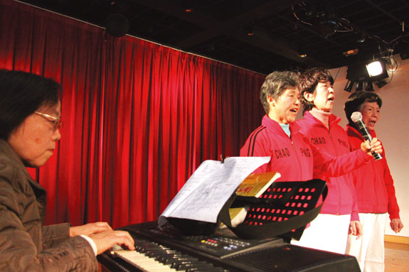 12月21日上午,黄岩老年电大的学员们在区老干部活动中心上演了一台自编自演的文艺演出。舞蹈《长绸扇》、独唱《江山》、武术《软气功》等形式多样、内容丰富的节目,不时博得观众阵阵掌声。