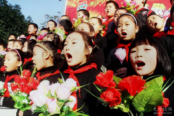 12月27日上午,滨江小学在校操场上举行“唱红歌颂祖国”迎元旦文艺演出活动。活动中,该校1000多名师生用嘹亮的歌声和饱满的热情唱出了对生活和伟大祖国的热爱,同时也展现了该校全体师生以崭新的面貌来迎接2012年新年的到来。