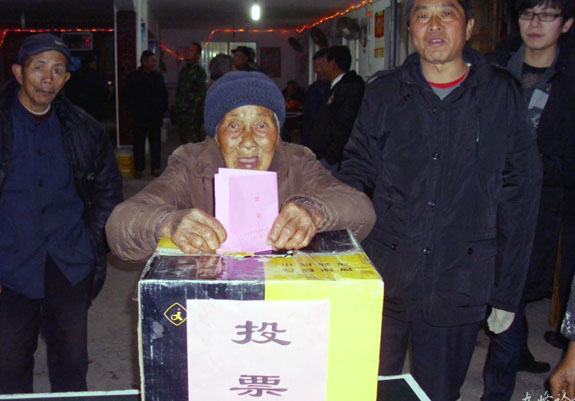 12月29日上午,茅畲乡下横村今年103岁高龄的叶亨妹老人在家人的陪同下,毅然来到区人大换届选举第九十三选区投票站填写选票,为区人大换届选举投下神圣的一票,行使自己的民主权利。