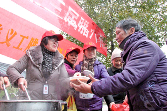 去年12月31日上午,塔苑社区联合黄岩慈善义工在塔园门口开展腊八节送温暖活动,逾千名市民在当天免费品尝到了热乎乎的腊八粥。