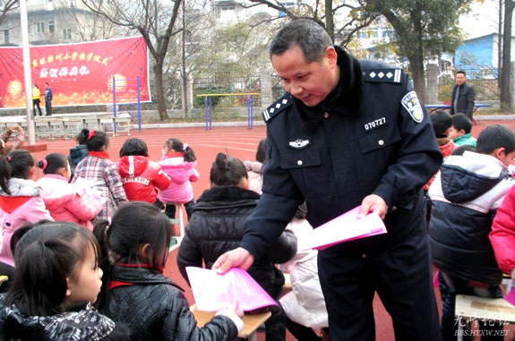 1月11日上午,城西派出所民警到辖区内樊川小学,为900多名学生上了一堂生动的假前法制和安全教育课。寒假前夕,城西派出所结合开展“三访三评”深化“大走访”活动,组织民警深入辖区各中小学校、民工子学校,以“青少犯罪与预防”和“平安出行”为主题开展假前法制和安全教育,通过讲解相关法律法规、以案说法等形式,深入浅出地向学生们讲解法制知识,引导学生远离网吧、游戏厅,远离“黄赌毒”,并向学生宣讲防火、防盗、防触电、防交通事故、防食物中毒、防溺水、防鞭炮炸伤等安全防范常识,加深了学生们对法律知识的理解,进一步增强了学生们的法制观念、遵纪守法意识和自我防护能力。