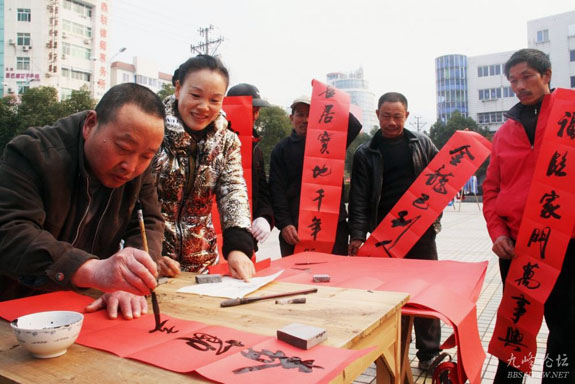 1月12日下午,东城街道东浦社区和白杨社区联合组织社区书法爱好者开展“为农民工义务写春联”活动。社区书法爱好者为近百位农民工和群众义务写好春联,同时还把对联送到环卫工人和社区残疾人家中,受到大家的一致好评。