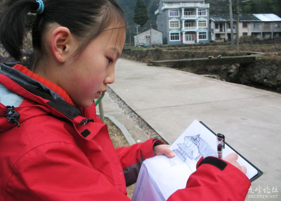 正月初一下午,一名杭州小女孩随父母来到平田乡桐树坑村,参观中共台属特委机关旧址纪念馆。当小女孩发现纪念馆旁边的老房子后,爱好作画的她拿出随身携带的画簿,坐在路旁一边看着老房子,一边认真地写生作画,吸引了不少游人和山民的目光。
