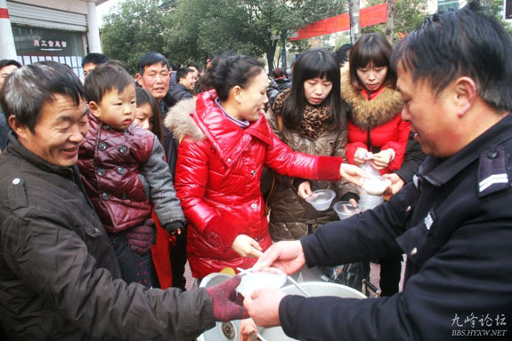 2月5日上午,东城街道东浦社区开展了“元宵节关爱外来民工”送温暖活动。社区组织10多名党员志愿者烧了5大桶热腾腾的爱心汤圆,特地送到外来民工聚集的黄岩劳动力市场,让这些新台州人身在异乡也感受到元宵节的氛围。