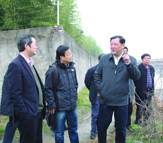 昨天上午,市委书记陈铁雄来到江口街道洋头村,督查我区“铁腕治水大会战”工作开展情况,实地查看东官河整治淤泥堆放场。他在督查中强调,各级各部门要加大铁腕治水力度,努力提升水质环境。市委常委、区委书记陈伟义,市人大常委会副主任王金生,副市长凌云,市政协副主席郑荐平,区委副书记、区长李昌道,副区长徐建民陪同。