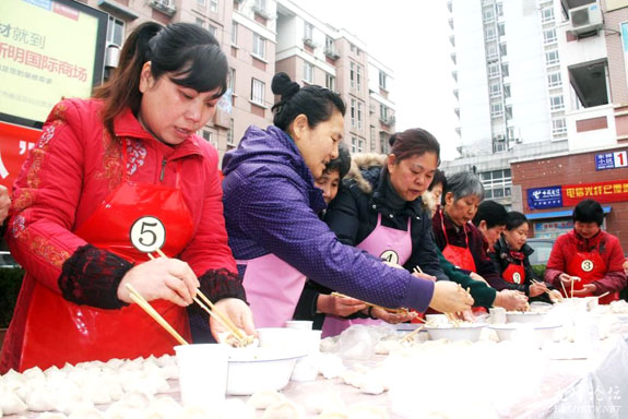 3月1日下午,东城街道塔苑社区举行“庆三八巧妇比巧手”包饺子比赛,社区内的15名包饺子高手齐聚一堂,上演包饺子大PK。比赛共分5组,每组3个人,在规定的10分钟时间内,包饺子的数量最多且外形好看则获胜。比赛结束后,社区将社区工作人员自己包的和选手们包的1000多个饺子分别装在小盒里送到了20多户空巢老人和低保户家中。