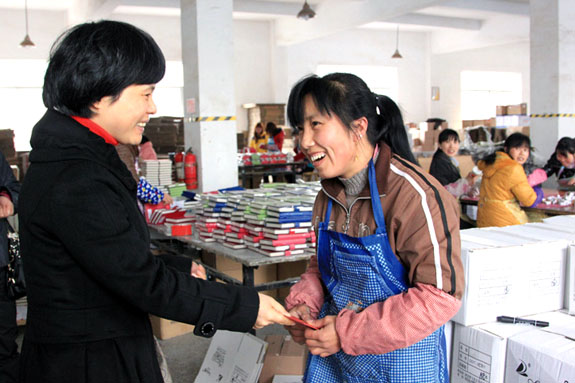 近日,区总工会工作人员来到位于院桥镇的得力佳文具公司和丰立机电公司,走访慰问杨买妹、陈国翠两位外来困难女职工,并为她们送上慰问金,并祝外来困难女职工过个快乐的“三八”妇女节。