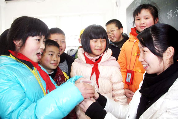 3月8日上午课间,滨江小学学生为自己的老师递上一杯茶。连日来,滨江小学开展了“我行动我感恩”庆三八感恩教育活动。小学生们通过给老师和妈妈送贺卡、送鲜花和我为长辈做件事等一系列活动,让同学们向全体女教师和自己的妈妈、奶奶等送去节日的问候和祝福。