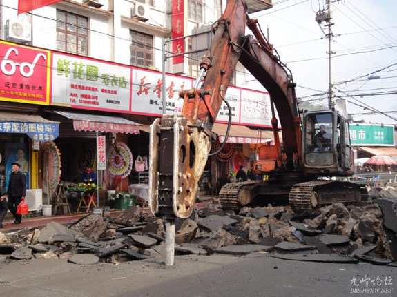 3月16日,一台大型挖掘机械进入西部山区大集镇中心宁溪钟楼路挖掘混泥土路面。该镇最近投资4000多万元大规模进行集镇污水收集管网建设,并列入今年实施的15个大工程之一把责任落实到人,按计划高质量完成,以进一步建好山区城镇,净化长潭水库上游水源,净化台州大水缸。