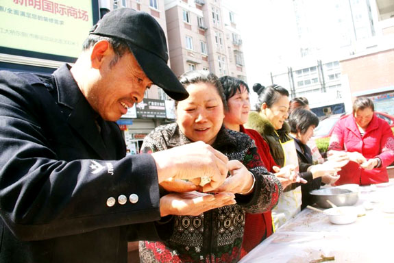 新老居民同做青团感受清明
