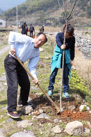 3月31日,区扶贫委、卫生局和上郑乡政府在下余村沉半洋进行植树活动,参加人员通过自己的双手,栽下一棵棵绿色希望,美化沿溪两岸,打造绿色长廊。