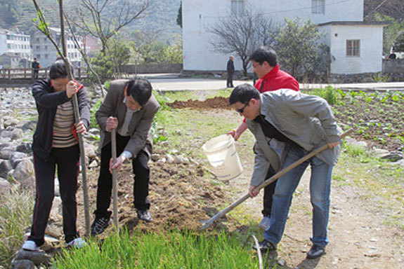 近日,区卫生局全体机关干部来到上郑乡下余村参加植树活动,经过一上午的劳作,一条“卫生绿色长廊”落户上郑乡。据悉,我区提出要力争在2013年获得省级“森林城市”称号。区卫生局此次植树活动,旨在响应区委区政府号召,为宜居黄岩再添一片新绿。