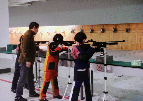 黄岩少体校的业余射击运动员正在教练的指导下认真训练。一年之计在于春。春季训练是运动员将身体和精神调整到最好状态的最佳时机。为全力备战浙江省第十五届运动会和台州市第四届运动会,黄岩少体校在顺利完成冬训任务后,总结经验定目标,随即以饱满的精神状态又引导相关项目的业余少年运动员投入到春训之中。